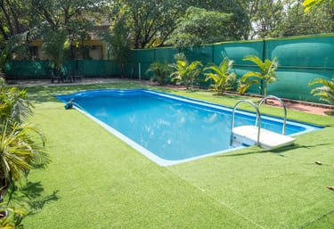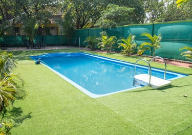 A refreshing outdoor pool perfect for family fun, relaxation and peaceful lounging with clean surroundings and a calm environment.